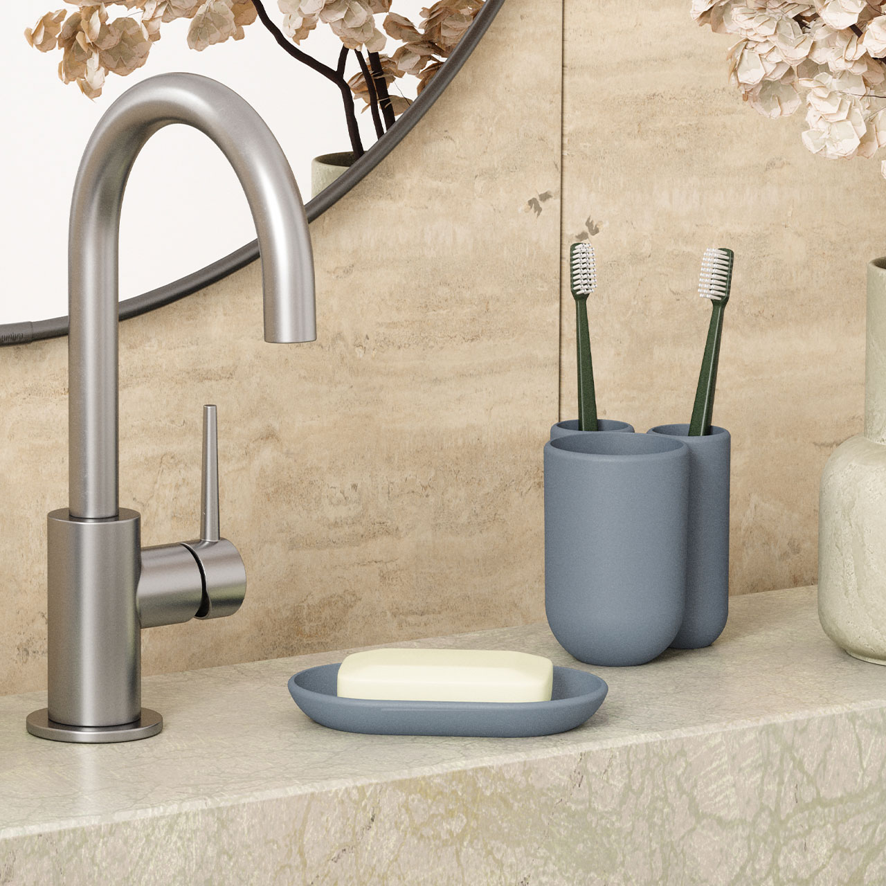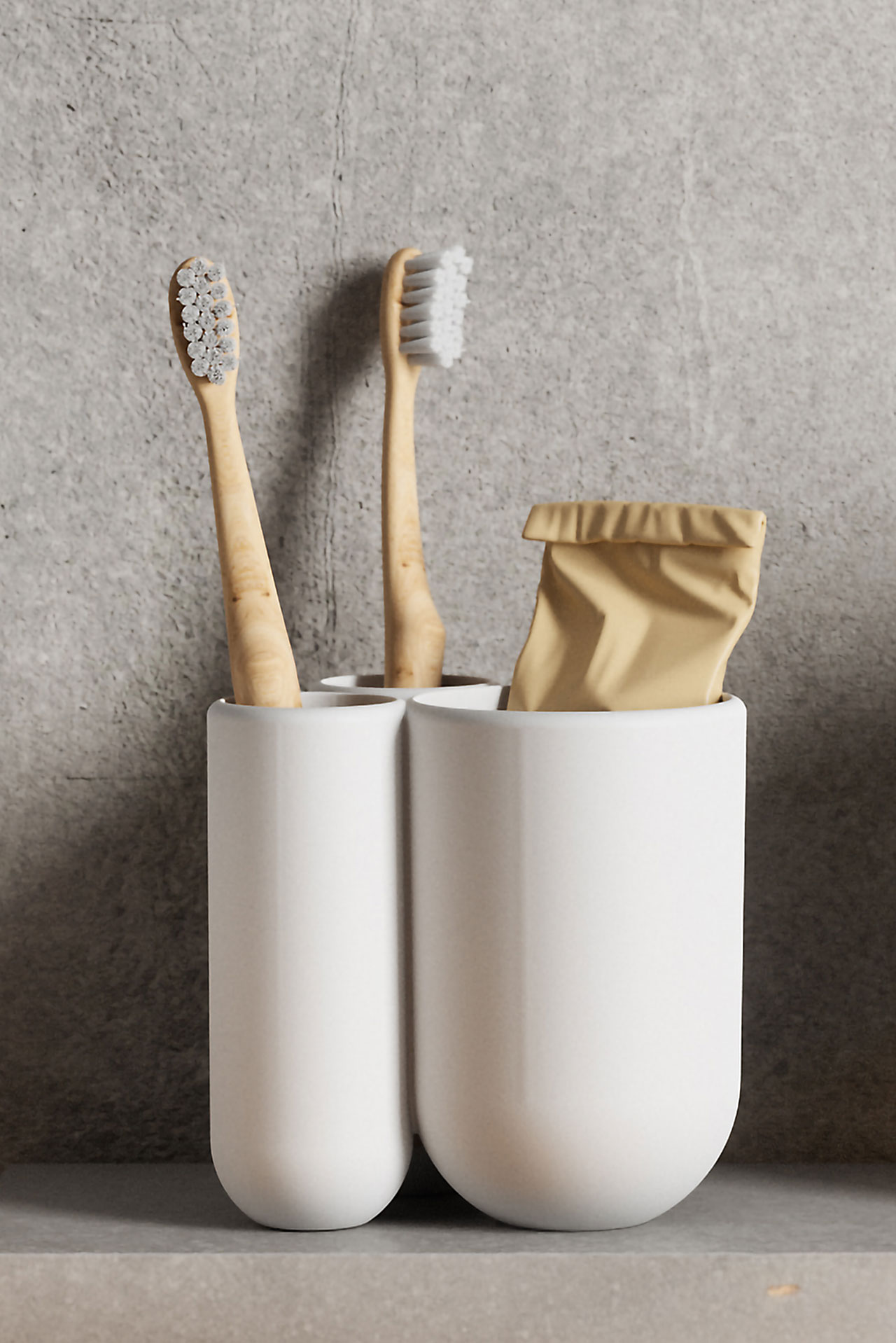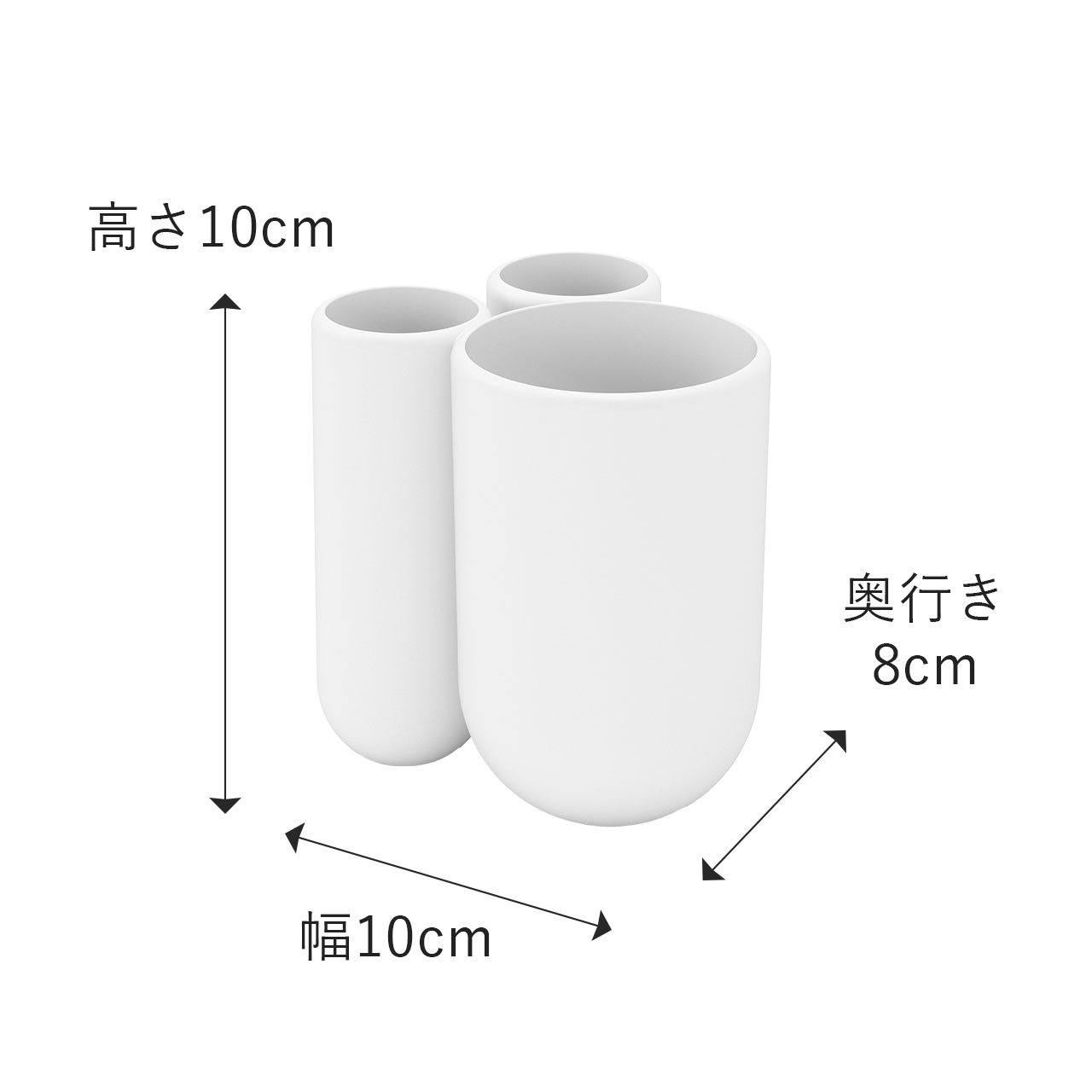 | 形状 3つのカップを組み合わせたようなホルダー。コンパクト設計で、歯ブラシと歯磨き粉を省スペースに収納することができます。 | |||||||||