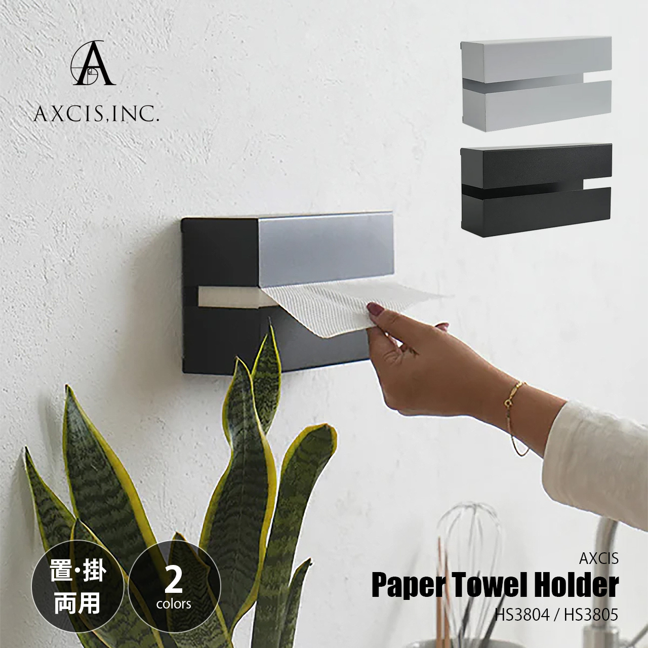| AXCIS Paper Towel Holder HS3804 / HS3805 GY グレー BK ブラック | ||||||||||