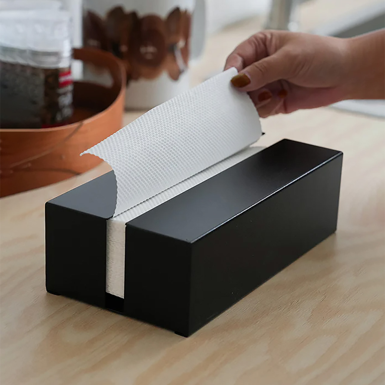 | AXCIS Paper Towel Holder ペーパータオルホルダー アイアン製の堅牢なつくりの置掛両用ペーパータオルホルダー キッチンや洗面所で活躍するアイアン製のペーパータオルホルダー。壁面にビスで固定して使用する事も、置いて使用する事もできるので、壁に穴を開けたくない場所でもお使いいただけます。壁付の場合は横向き設置(縦向きの際は開口部を上に)、置いて使用する場合は縦向き・横向きどちらでも使用可能です。重量があるので安定してペーパーを取り出せます。表面の加工にこだわり、ざらりとした質感がシンプルかつ上質な雰囲気で、キッチンの雰囲気を壊しません。 | ||||||||||