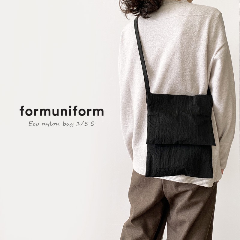 リトアニアのブランドformuniformのエコナイロンシリーズ、1/5バッグです。「サスティナビリティ」をテーマに展開するエコナイロンシリーズは、手に取りやすいデザインと機能性を兼ね備え、都市におけるエコスタイルの表現の一つとして打ち出されています。