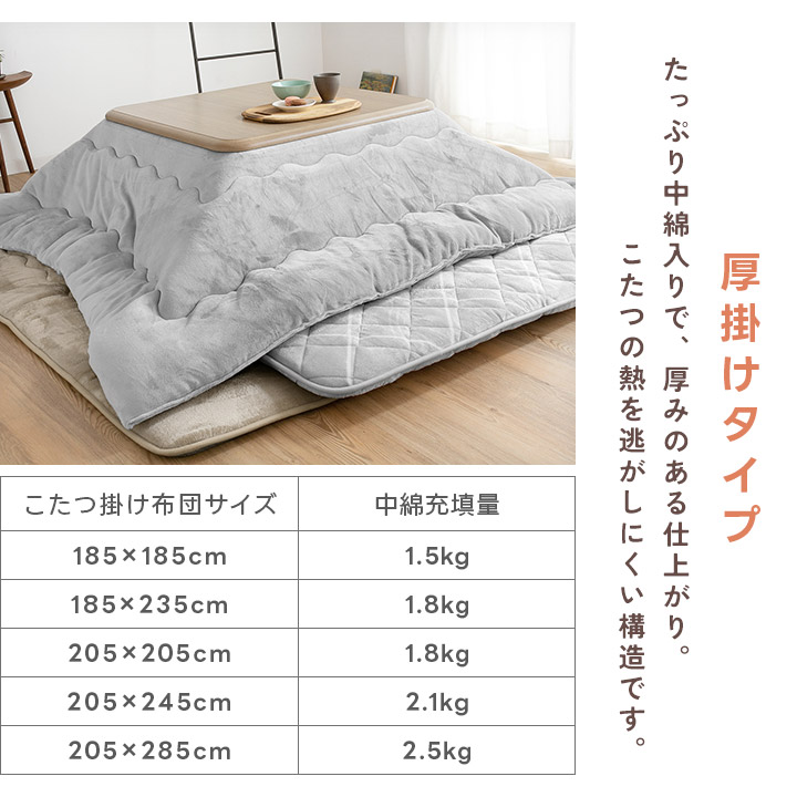 こたつ布団 長方形 大判 洗える リバーシブル こたつ掛け布団 厚掛け 205×245cm あったか 暖かい 中綿2.1kg こたつぶとん 炬燵布団