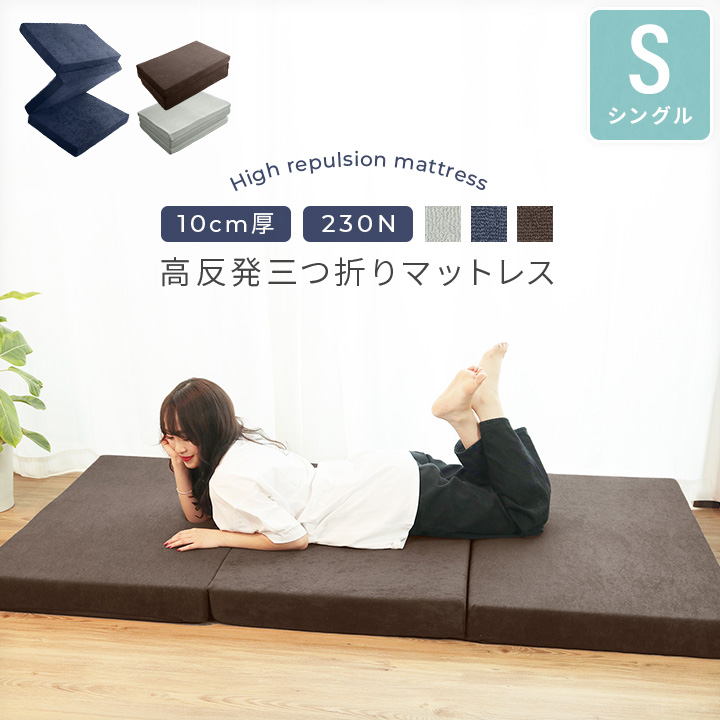 高反発マットレス シングル 厚さ10cm 硬め230N 三つ折り 高反発ウレタン 洗えるパイルカバー