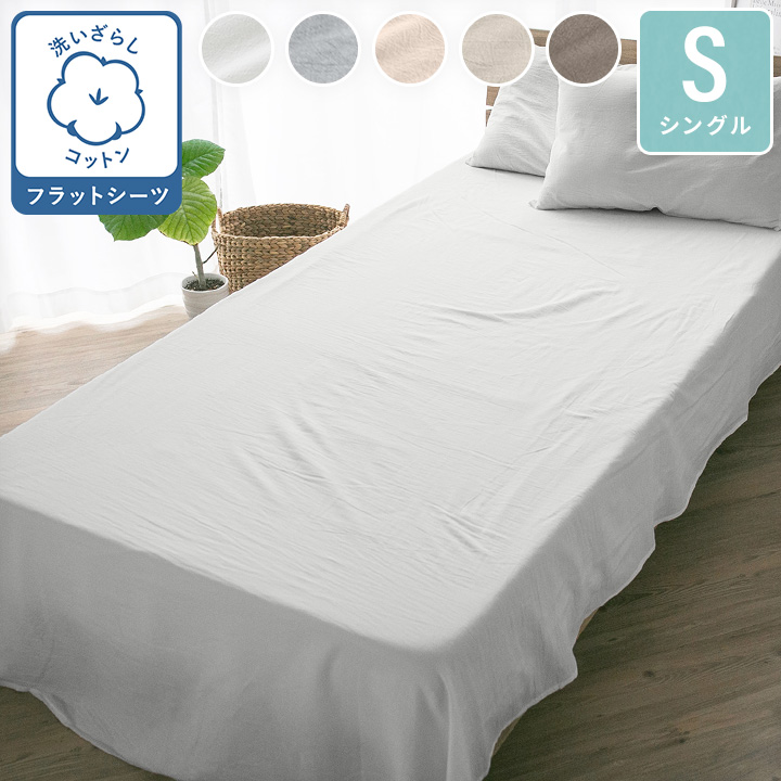 フラットシーツ 綿100% シングル 綿洗いざらし サラサラ 快適 やわらかい 肌に優しい