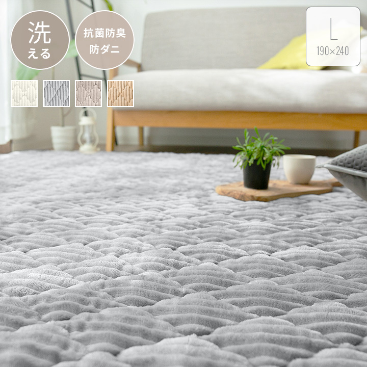 ラグ 洗える ストライプ ラグマット キルトラグ 190×240 防菌 防臭 防ダニ 床暖房対応 滑り止め ホットカーペット対応 3畳 こたつ敷