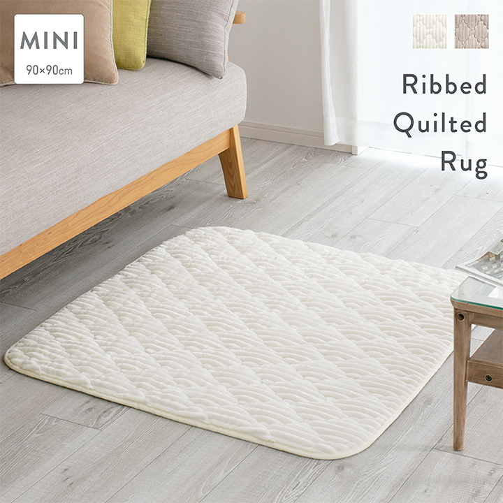 リブ調キルトラグ フランネル キルト キルティング 厚手 シンプル コーデュロイ あったか 冬 冬用 マット 90×90cm MINI ミニ ポイント利用 爆買