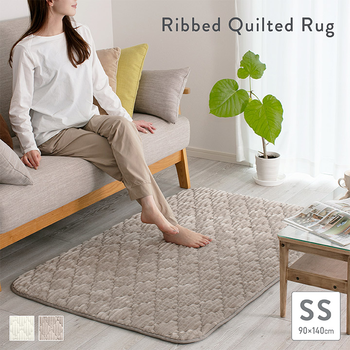 リブ調キルトラグ フランネル キルト キルティング 厚手 シンプル コーデュロイ あったか 冬 冬用 マット 90×140cm SS ポイント利用 爆買