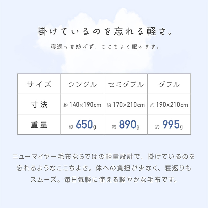 ニューマイヤー毛布 140×190cm 手洗いOK 冬 春 秋 暖かい ポイント利用 爆買