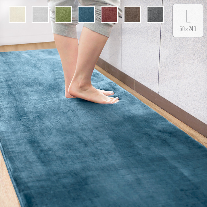 キッチンマット240 60×240cm 低反発 フランネルマット 60cm幅 極厚ウレタン20mm 滑り止め付き 抗菌防臭 防ダニ 遮音