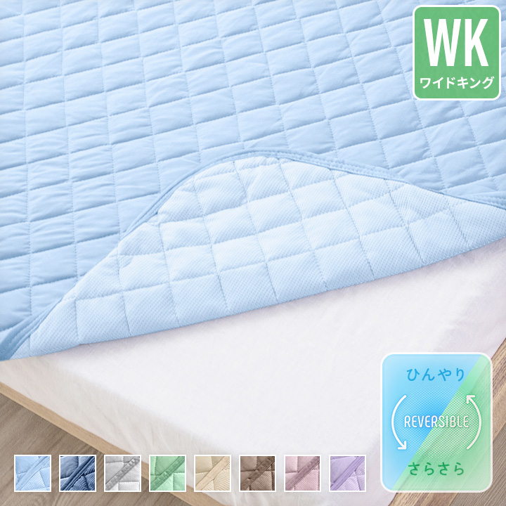 敷きパッド ワイドキング リバーシブル 敷パッド ひんやり接触冷感×さらふわ吸水速乾ワッフル 春 夏 秋
