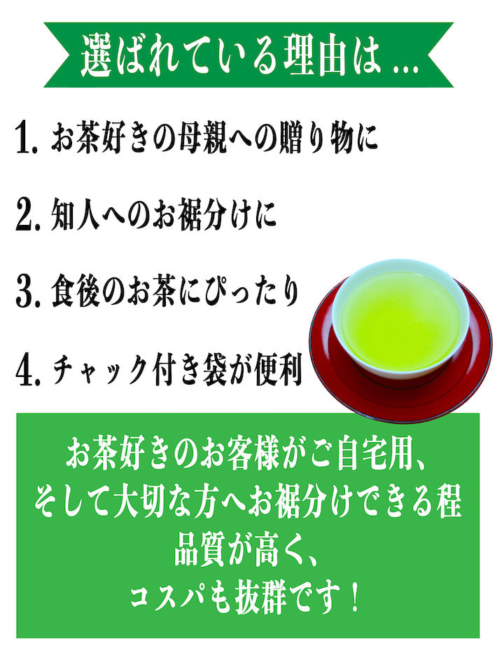 自社で製造した安心安全な深蒸し茶をお届けいたします!コクのある味わいをお楽しみください。