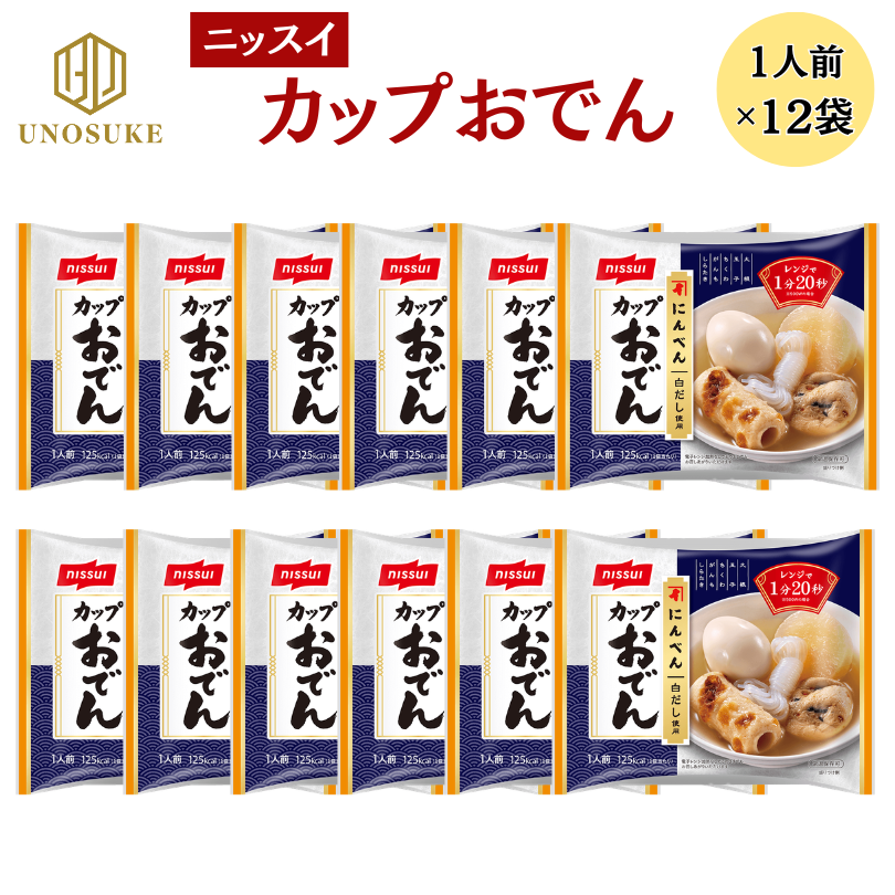 在庫処分 ニッスイ にんべん白だし使用カップおでん 1人前×12個 温めるだけ おでん レトルト 常温保存 常備食 非常食 食品 おつまみ おかず 惣菜 あて