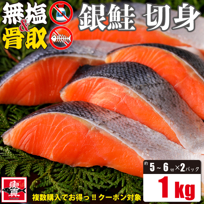 無塩 骨無 銀鮭 切り身 1kg 骨なし 無塩 切り身 さけ 鮭 加熱用 お徳用 業務用 送料無料 魚真