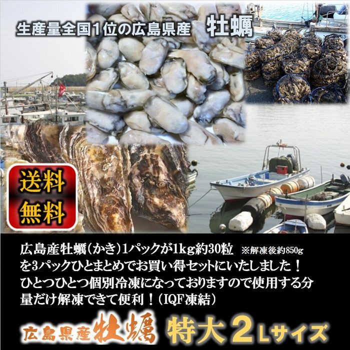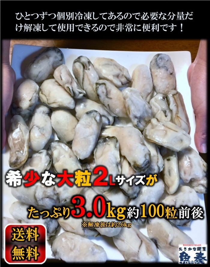 牡蠣 かき カキ 広島 剥き牡蠣 3kg 特大 大粒 2Lサイズ (解凍後約850g/約90個前後) 鍋 歳末 お歳暮 年末グルメ 贈答 迎春