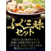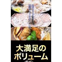 当店人気の海宝セットに、厳選した国産天然ゴマふぐを加えたボリュームたっぶりのふぐ鍋、ふぐ刺しセットには、ふぐ刺し80g、ふぐ鍋用とらふぐ600g、ゴマふぐ600g、 白子、ふぐ皮湯引き30g、ひれ酒用ひれ、自家製ポン酢、もみじおろし、国産だし昆布がついて5〜6人分の内容量です。