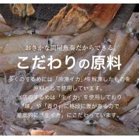 多くのするめは「冷凍イカ」を解凍したものを原料として使用していますが、当店のするめは味と香りに格段の差が出る「北海道産生真イカ」にこだわっています。