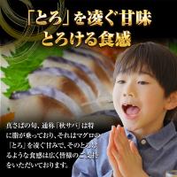 真さばの旬、通称「秋サバ」は特に脂が乗っており、それはマグロの「とろ」を凌ぐ甘みで、そのとろけるような食感は広く皆様のご支持をいただいております。