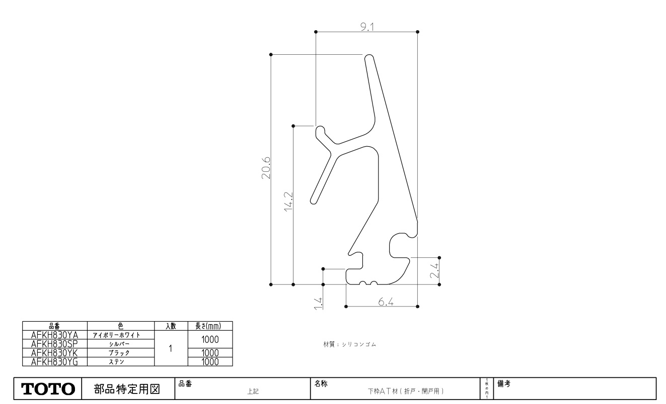 TOTO バスルーム 浴室ドア 下枠エアタイト材【AFKH830YA】