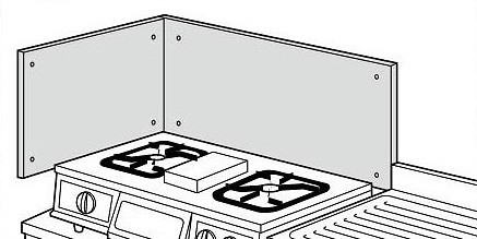 ハーフユニットでガスコンロを設置の場合、必ずキッチン取付後壁及び側壁を石膏ボード厚み9.5mm相当以上の不燃性能を有した材料で仕上げ、合わせて防熱板を用いてください。