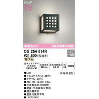 高演色LED 白熱灯器具60W相当 OG254614R 電球色 2700K 消費電力6.6W Ra94 ●LED ●ルミダイカスト(黒色)●アクリル(乳白) ●巾□115 高126 0.8kg ■光源寿命40,000時間 ■壁面・天井面取付兼用 ■調光器不可 ■温泉地使用不可 防雨・防湿型 その他