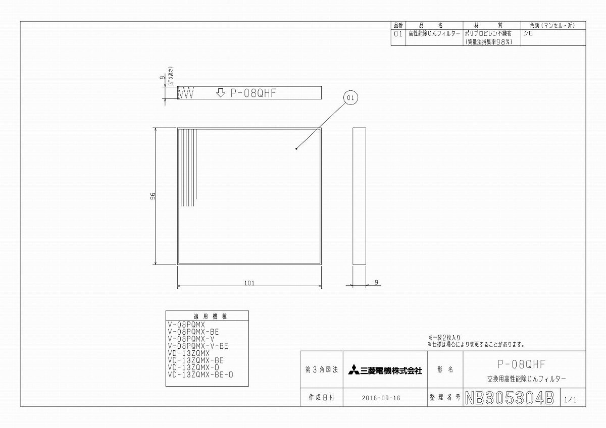 給気・循環ユニット〈ミックスフローファン〉の交換用高性能除じんフィルターです。●材質:不織布
