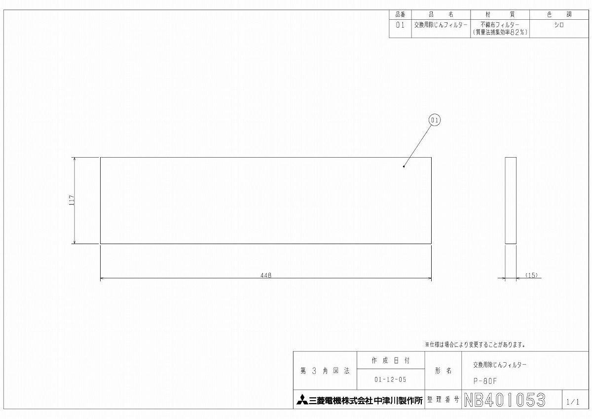 三菱 換気扇 【P-80F】 交換用除じんフィルター(全機種) 【P80F】