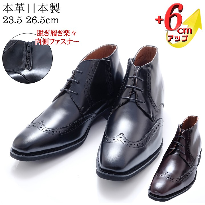 シークレットシューズ No.1302 牛革ウイングチップ ロングノーズブーツ 【6cmアップ】 ビジネスシューズ メンズシューズ 【送料無料】