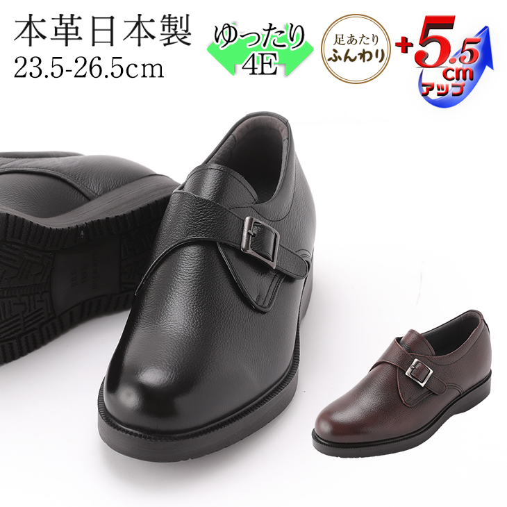【送料無料】No.921牛革モンクプレーンシューズ【NEW5.5cmヒールアップシューズ】代引手数料無料!
