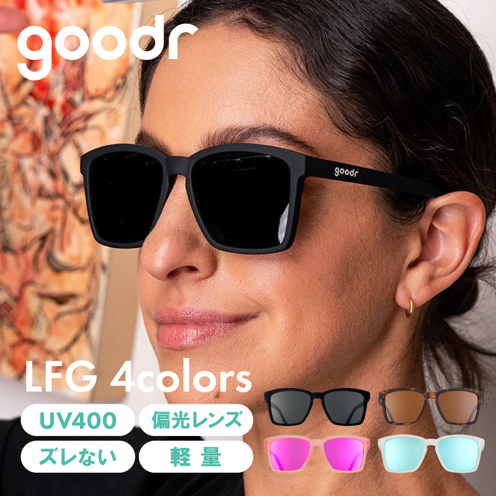 ランニング用サングラスをもっと気軽にいままでの一般的なランニング用サングラスはオーバースペックかつ高価で、ランニング以外で気軽に着用するにはデザイン性が乏しいものが多く、購入のハードルが高いものでした。「goodr / グダー」はそうした問題を解決するべく、手頃でスタイリッシュなデザインで、パフォーマンスにも優れたランニング用サングラスを作ることを目指して、2015年にカリフォルニアで誕生しました。「滑らない」「跳ねない」「ALL偏光レンズ」の機能性に加え、手頃な価格で高いファッション性を備えた「goodr」は、あらゆるアウトドアアクティビティやタウンユースにも活用できる、カリフォルニアのハッピーな要素を盛り込んだ遊び心満載のサングラスブランドです。
