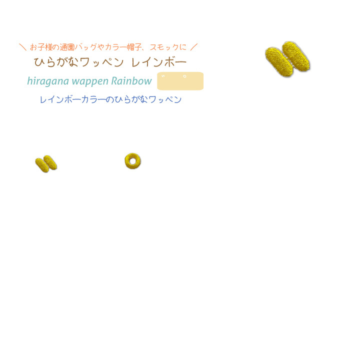 「゛ 濁点」「゜ 半濁点」のレインボーカラーのひらがなワッペン 各1個100円(税別)
