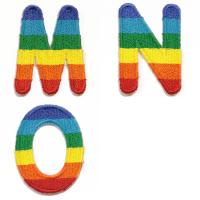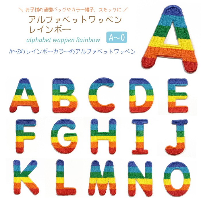 A〜Oのレインボーカラーのアルファベットワッペン 各1個150円(税別)