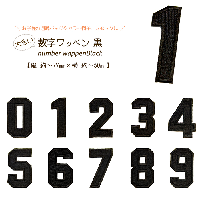 シンプルな黒の大きい数字ワッペン 各1個200円(税別)