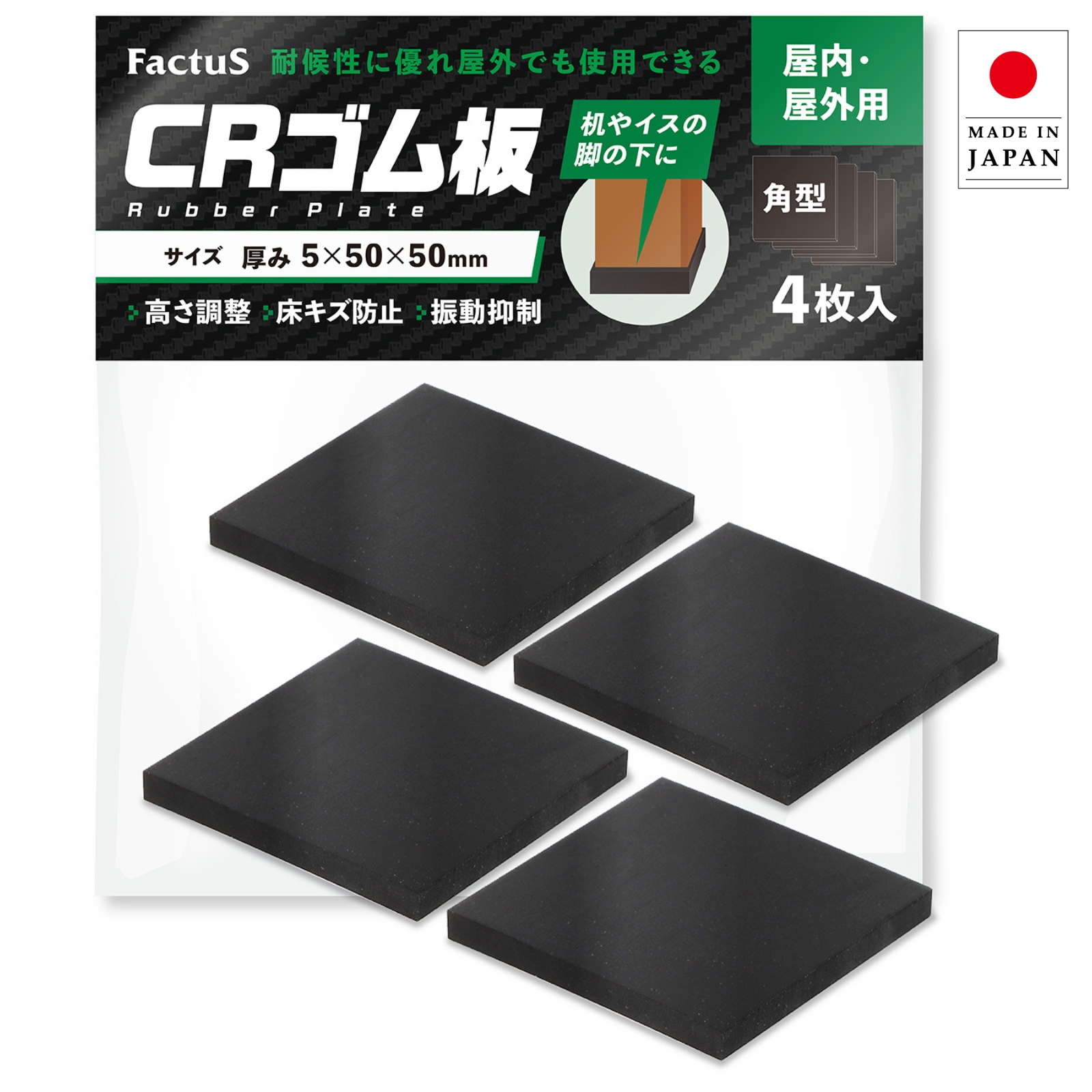 ゴム板 5mm厚 屋外 耐候性 高さ調整 滑り止め 緩衝材 傷防止 レザークラフト 正方形 四角 CR素材 洗濯機 室外機 防振 騒音 振動 防止 factus