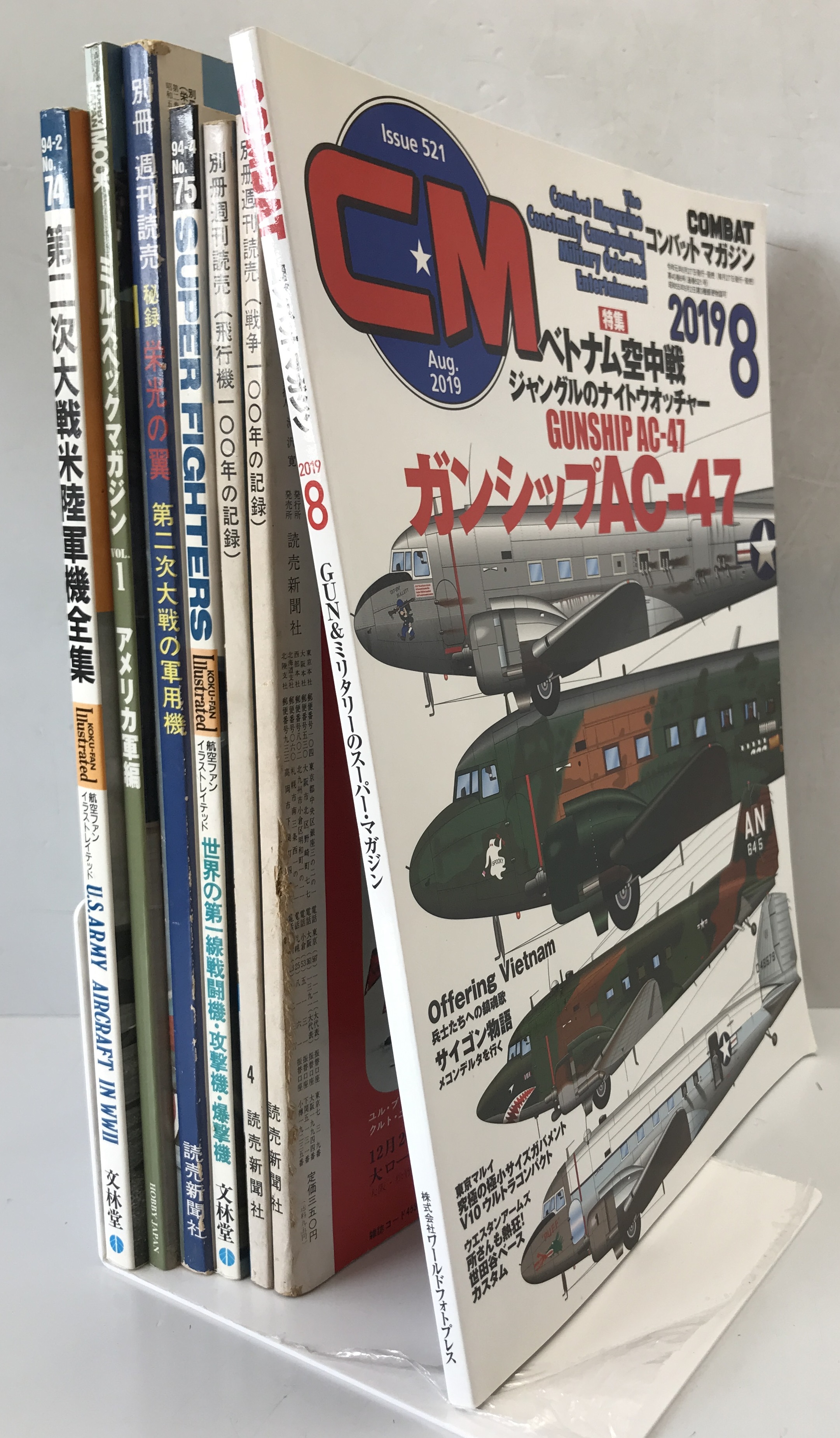 ・書名:航空機本 7冊:コンバットマガジン2019/08、別冊週刊読売1970/01、1970/04、1975/01、Super Fighters'94/04、ミルスペックマガジン vol.1、航空ファン’94/02 ・ISBN: ・著者: ・出版元: ・刊行年:1960-1998 ・解説:
