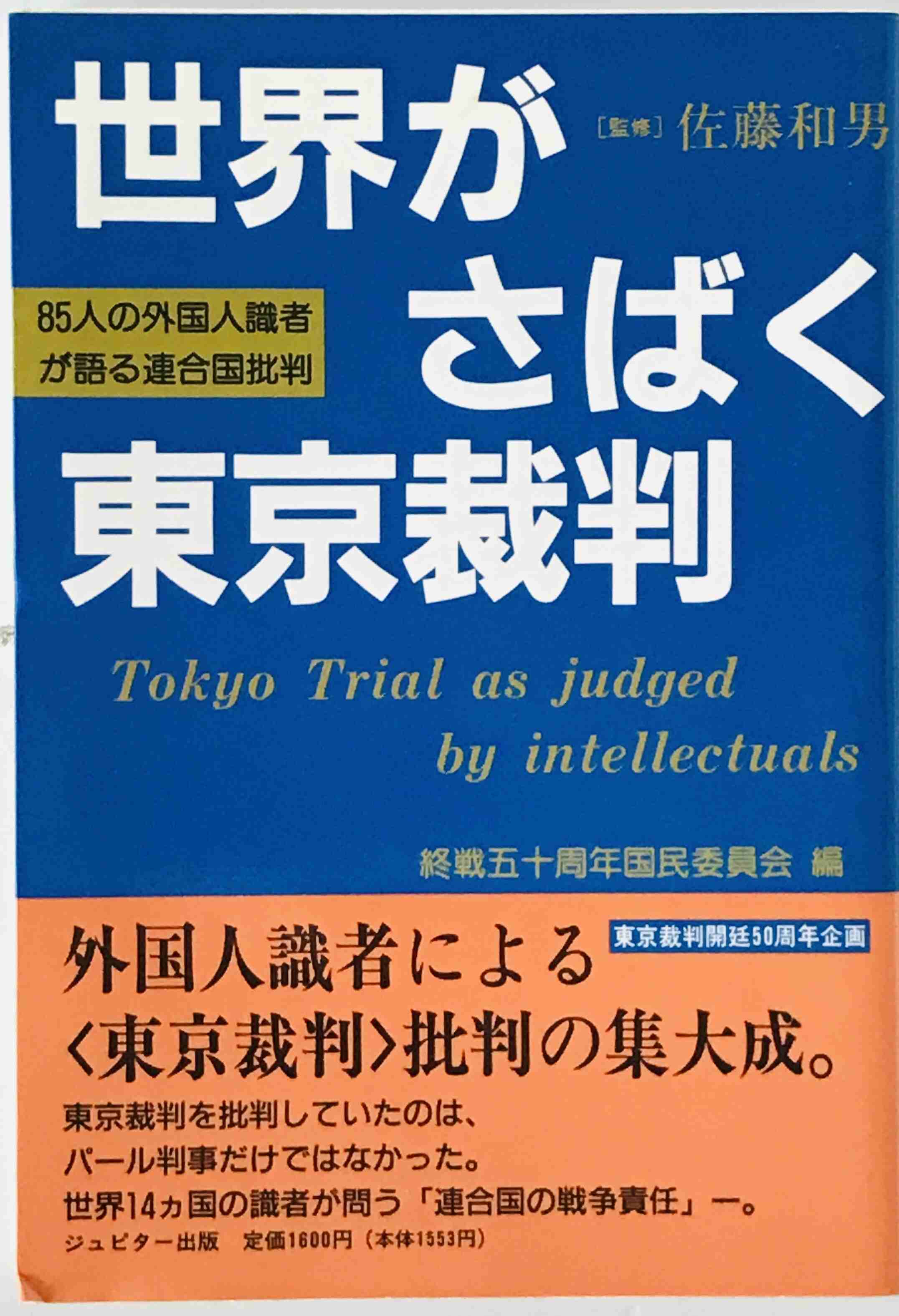 ・書名:世界がさばく東京裁判 : 85人の外国識者が語る連合国裁判 ・ISBN:4916029097 ・著者:終戦五十周年国民委員会 編 ・出版元:ジュピター出版 ・刊行年:1996/09/25 初版第2刷 ・解説: