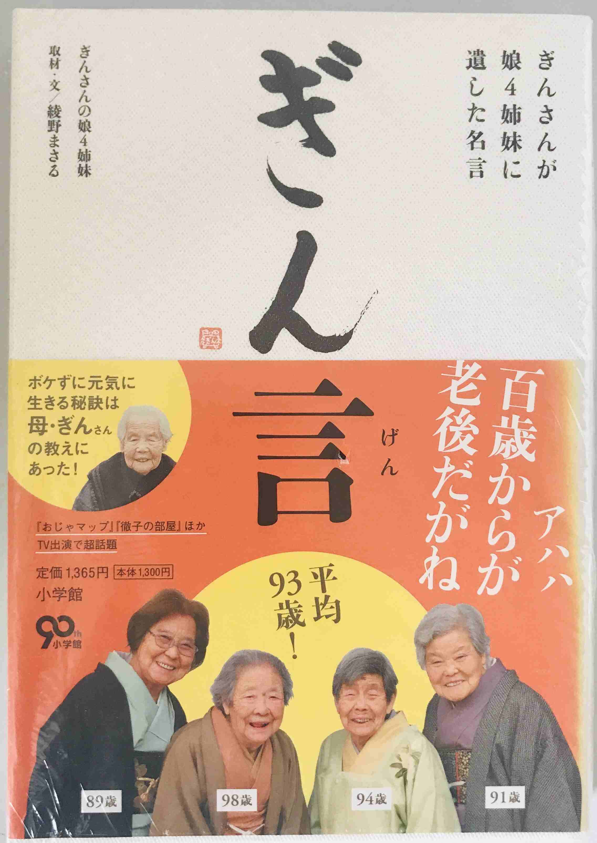 ・書名:ぎん言 : ぎんさんが娘4姉妹に遺した名言 ・ISBN:978-4-09-396515-6 ・著者:ぎんさんの娘4姉妹 著 ; 綾野まさる 取材・文 ・出版元:小学館 ・刊行年:2012/04/29 初版第1刷 ・解説: