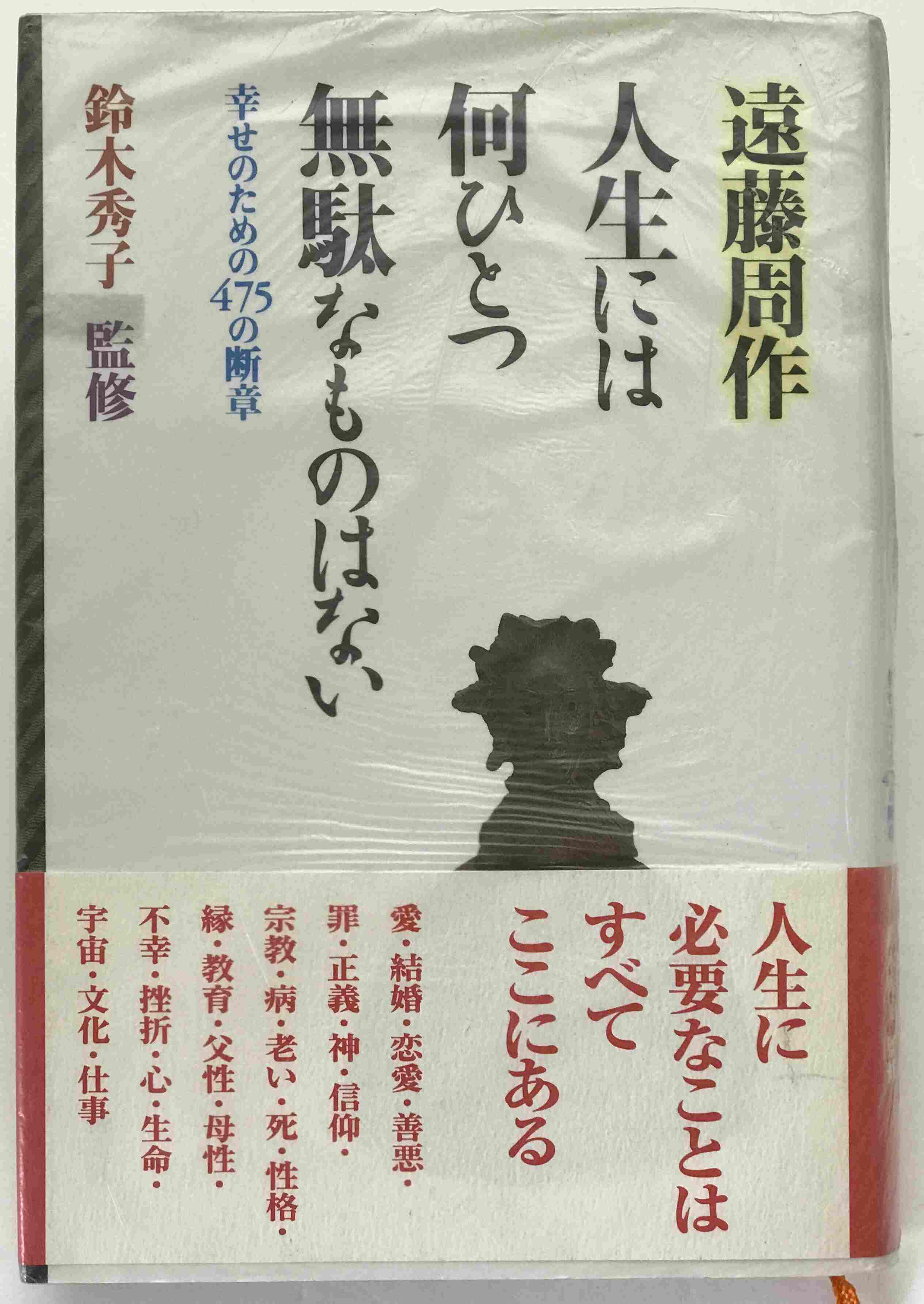 ・書名:人生には何ひとつ無駄なものはない : 幸せのための475の断章 ・ISBN:4759305408 ・著者:遠藤周作 著 ; 鈴木秀子 監修 ・出版元:海竜社 ・刊行年:1998/03/20 ・解説:表紙少々汚れあり