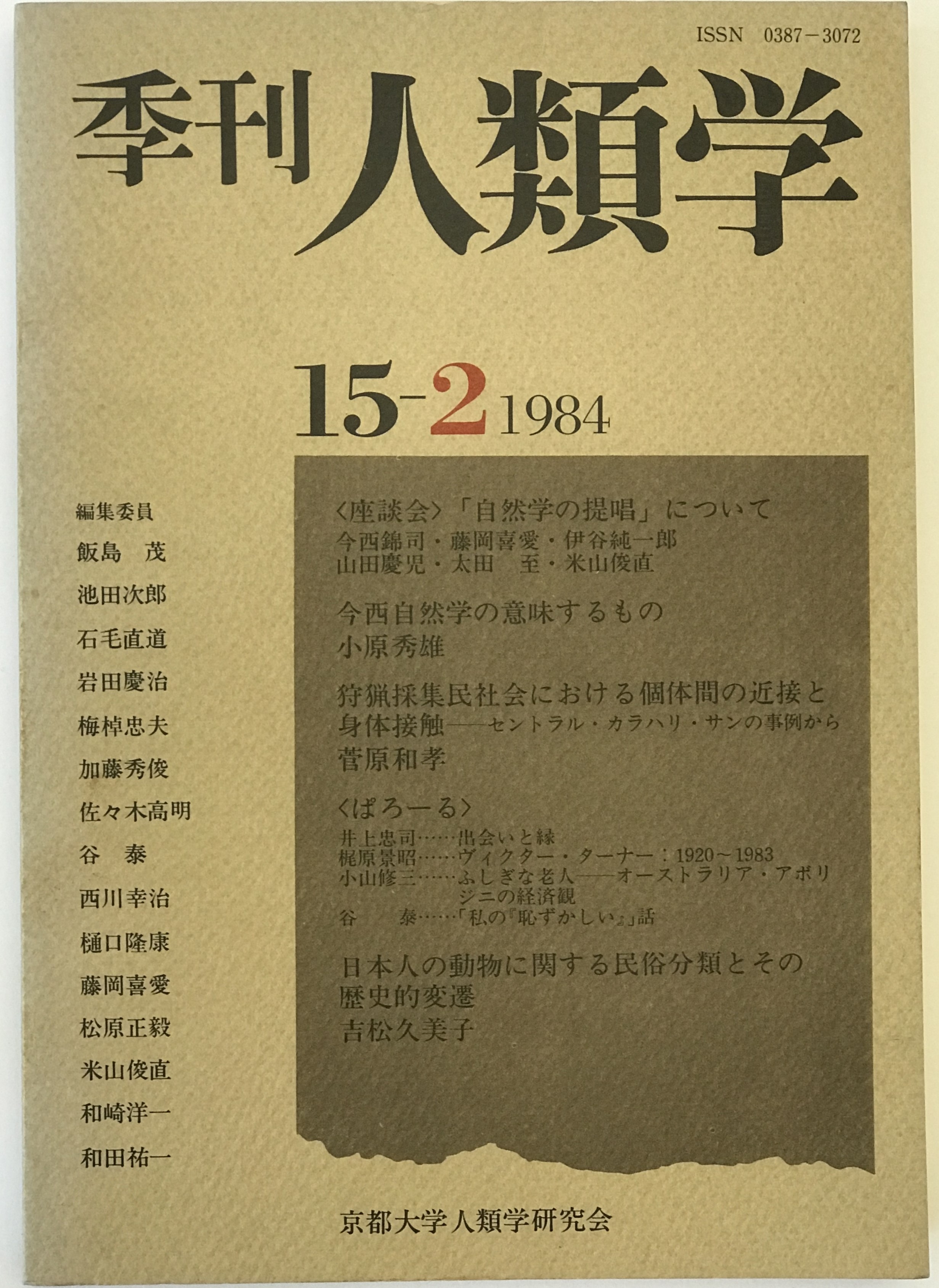 ・書名:季刊人類学 ・ISBN:4061285661 ・著者:京都大学人類学研究会 [編] ・出版元:社会思想社 ・刊行年:1984/06/15 ・解説:表紙少々汚れあり、奥付汚れあり