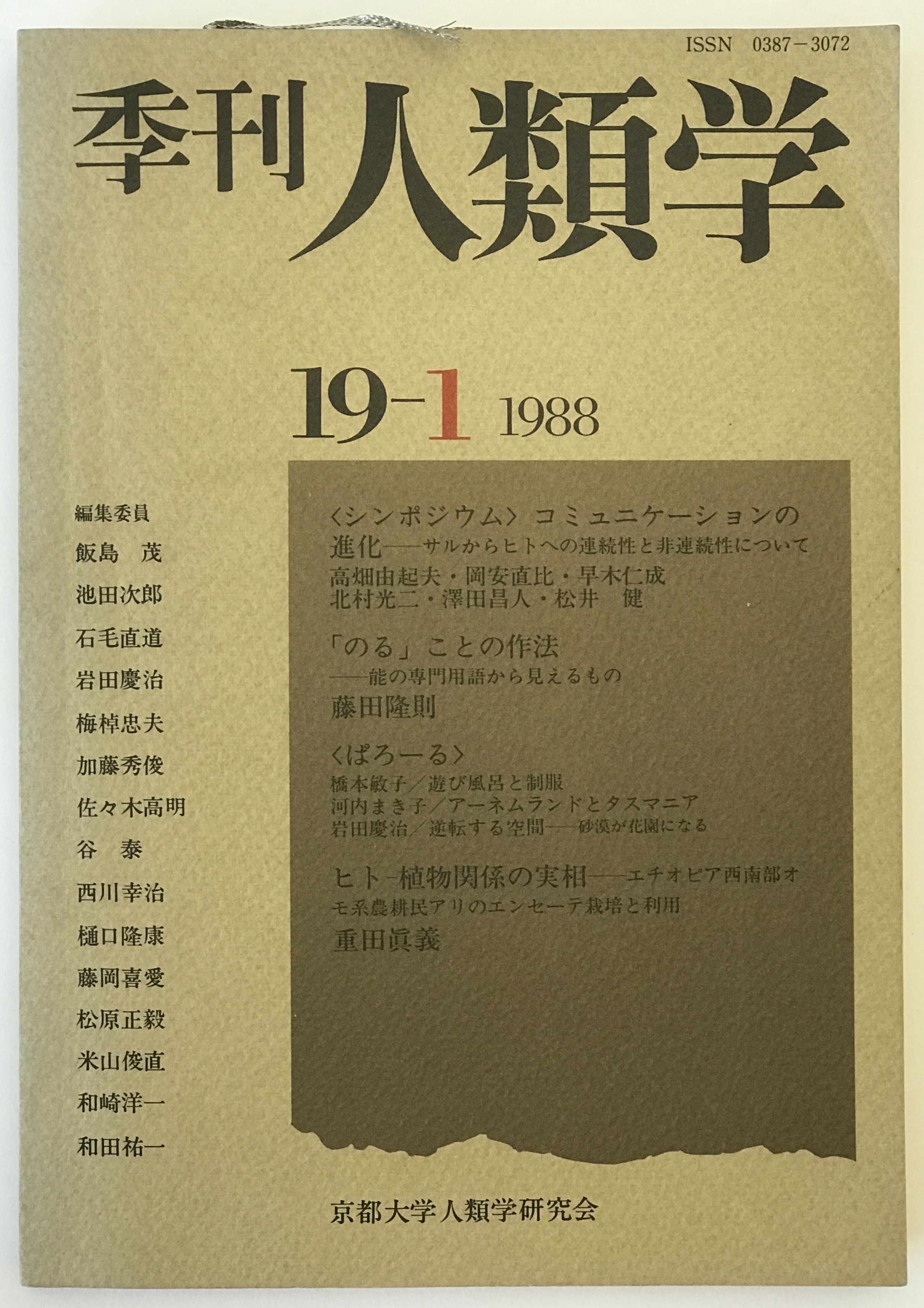 ・書名:季刊人類学 ・ISBN:4061297759 ・著者:京都大学人類学研究会 [編] ・出版元:社会思想社 ・刊行年:1988/03/28 ・解説:表紙開き跡汚れスレあり