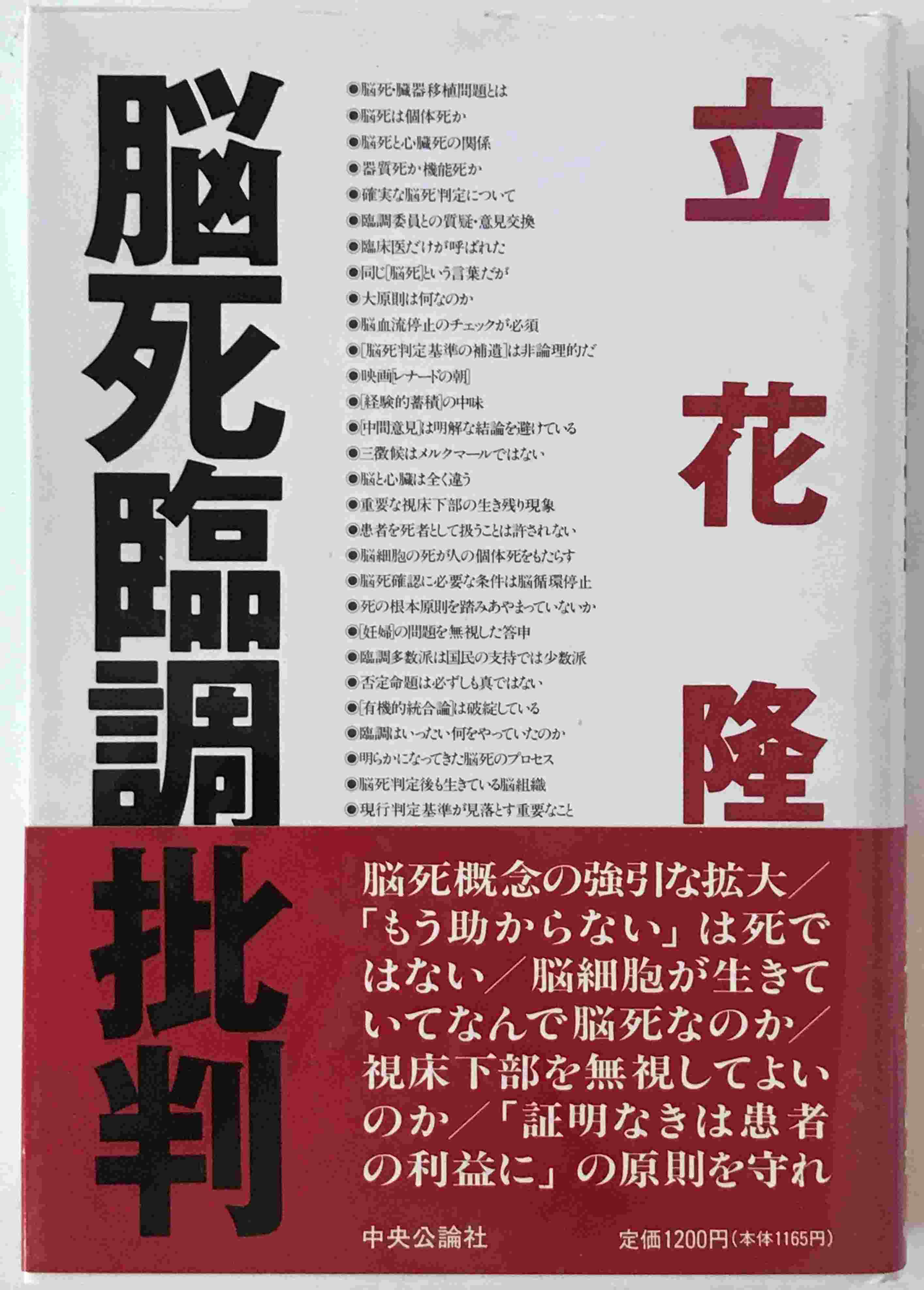 説明:立花隆の著書『脳死臨調批判』は、1992年に中央公論社から初版で刊行された作品です。本書は、当時の脳死に関する臨床調査や議論に対して批判的な視点から考察を試みており、医療や倫理の問題に関心を持つ読者に向けられているようです。著者の独自の視点が反映されているとされ、脳死の定義やその社会的影響について理解を深めたい方に参考となるかもしれません。