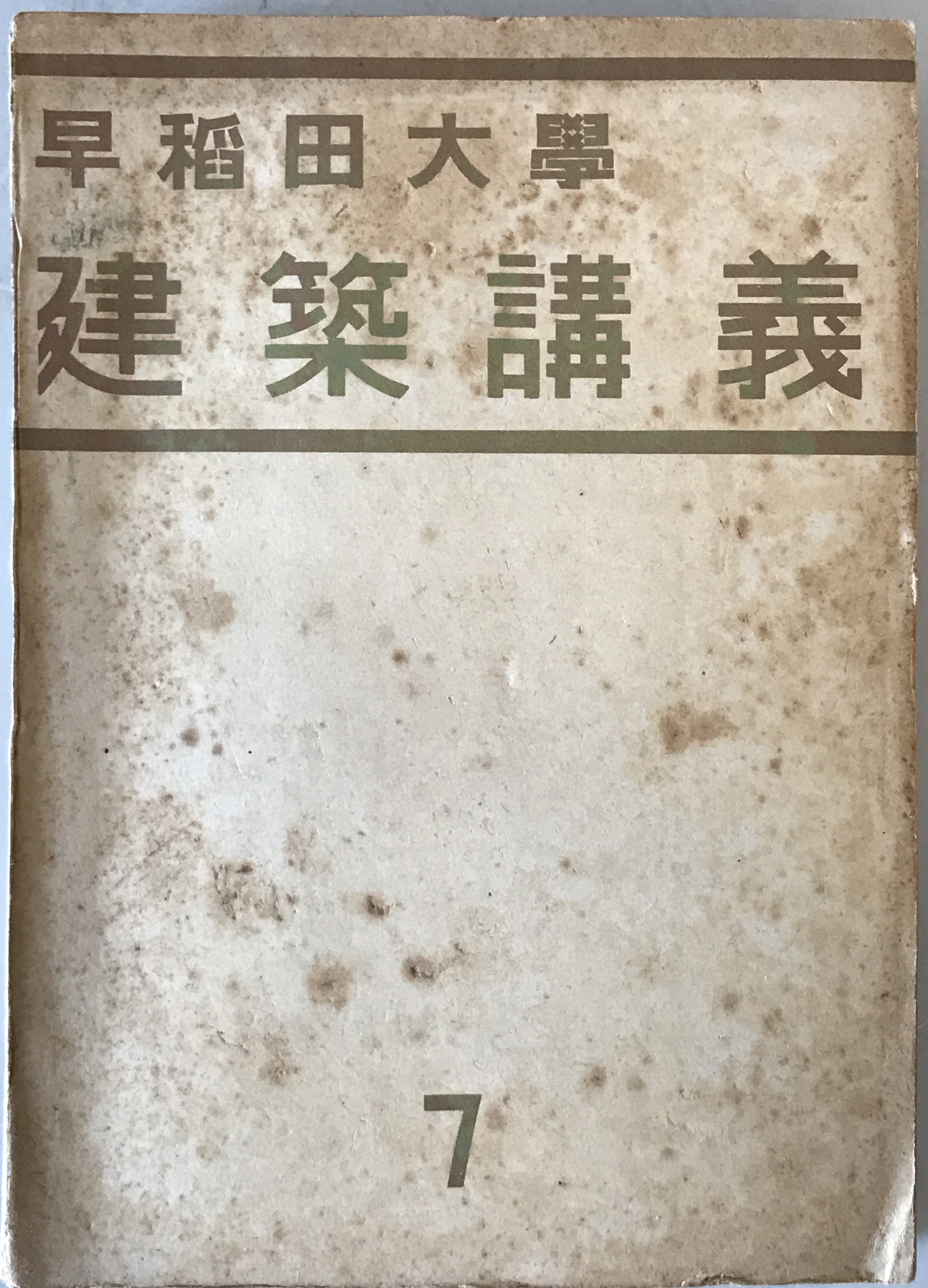・書名:早稲田大学建築講義 7 ・ISBN: ・著者: ・出版元:早稲田大学出版部 ・刊行年:[昭和16] ・解説: