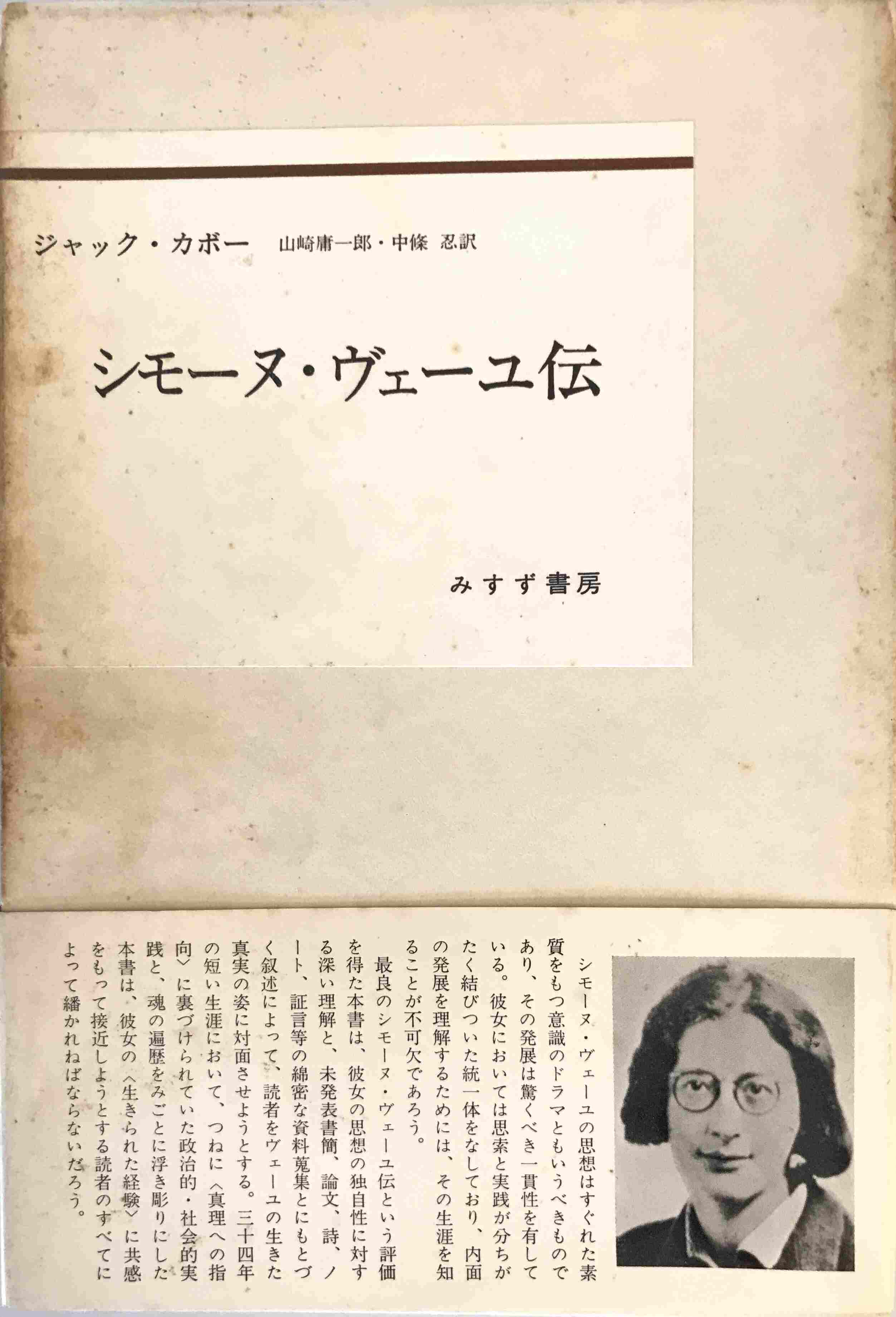 [書名] シモーヌ・ヴェーユ伝 ジャック・カボー 著 ; 山崎庸一郎, 中条忍 訳 みすず書房 1974年