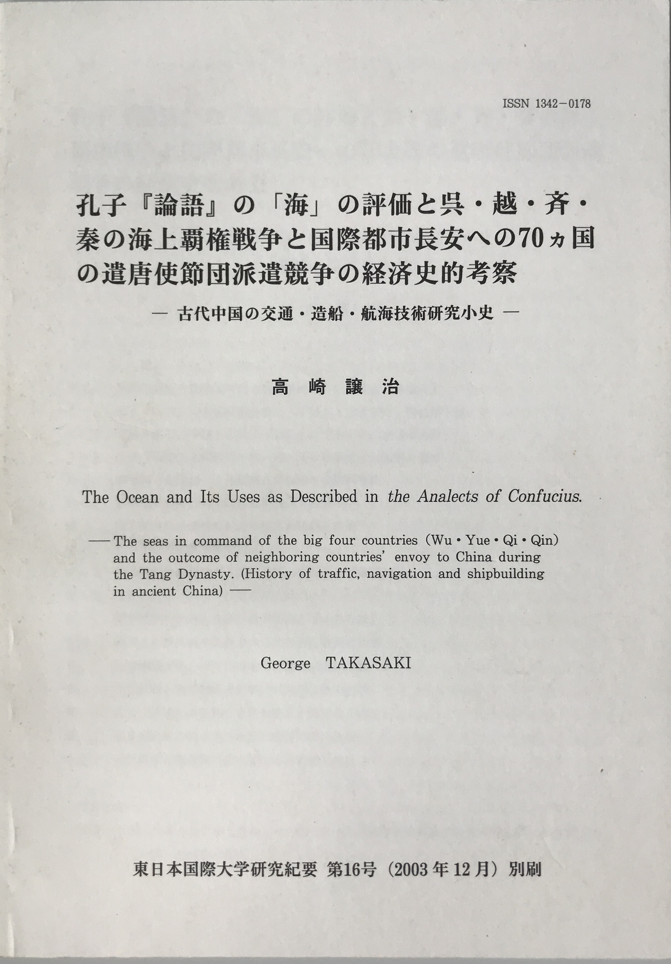 ・書名:孔子『論語』の「海」の評価と呉・越・斉・秦の海上覇権戦争と国際都市長安への70カ国の遣唐使節団派遣競争の経済史的考察--古代中国の交通・造船・航海技術研究小史