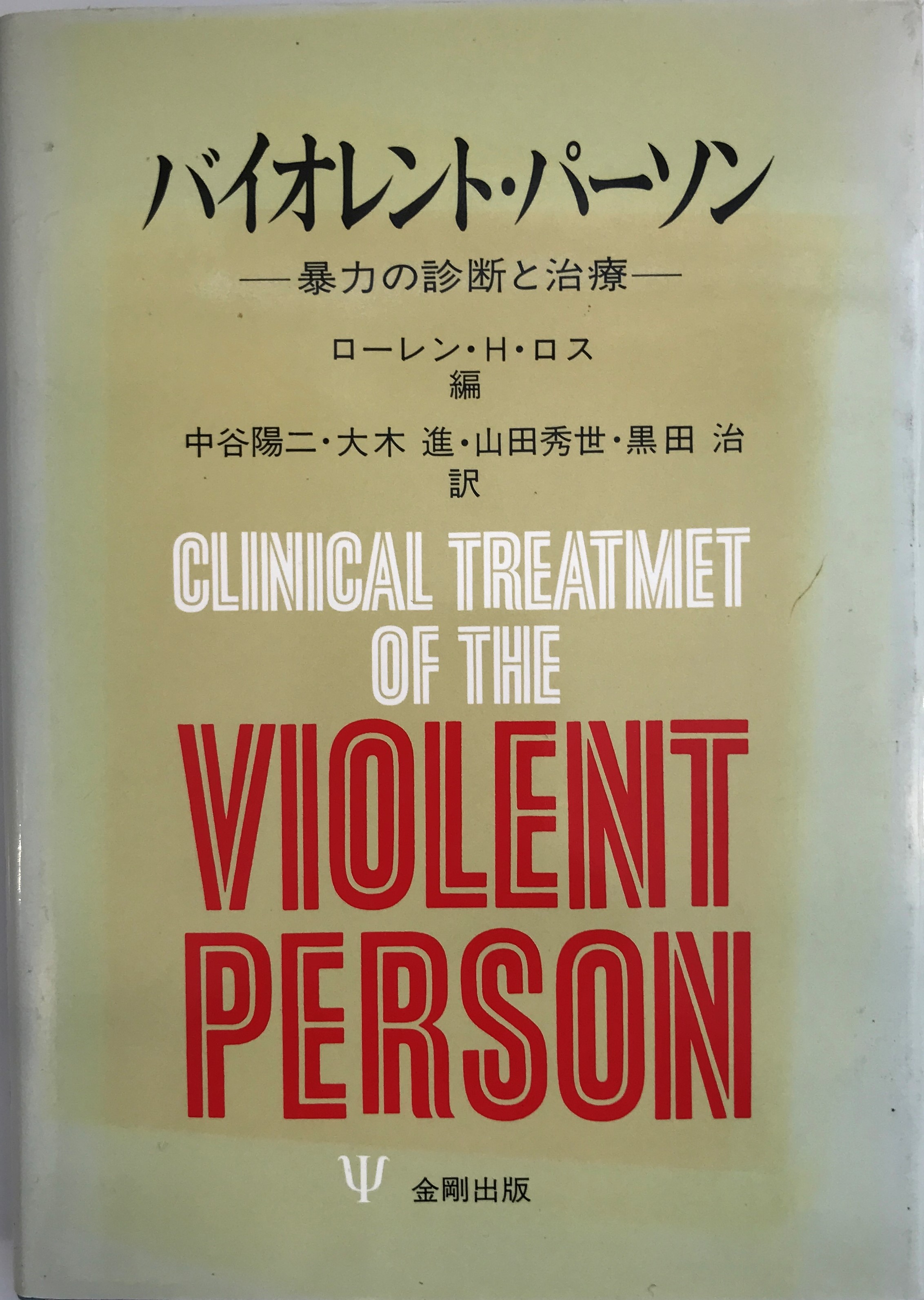 説明:金剛1994年刊『バイオレント・パーソン : 暴力の診断と治療』は、ローレン・H.ロス編、中谷陽二ほか訳による暴力的行動の精神医学的評価と効果的治療法を体系的に解説した学術書である。暴力問題の精神医療分野での臨床指標として重要な役割を果たしている。
