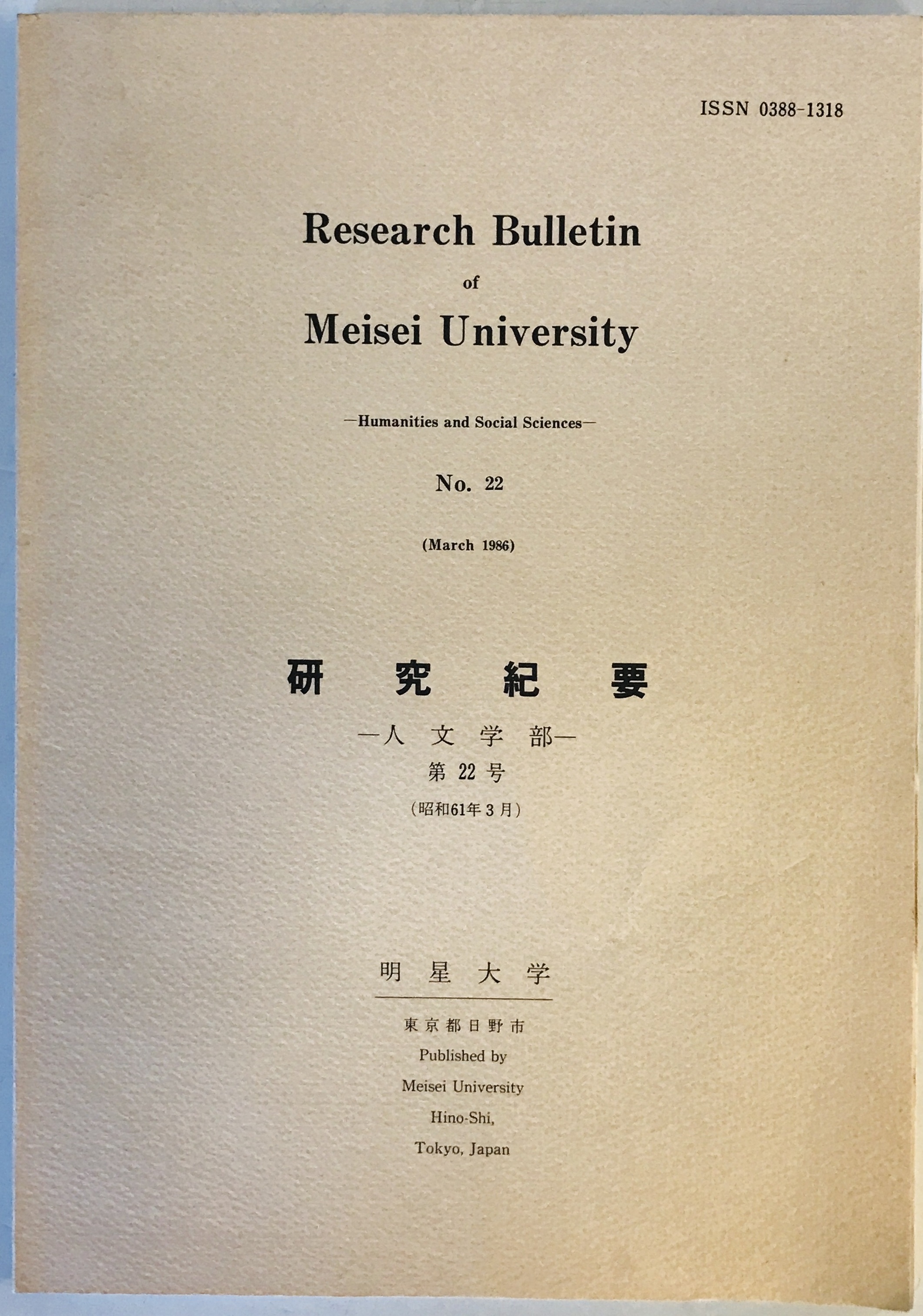 [発行所・発行年] 明星大学人文学部 刊行年:1986