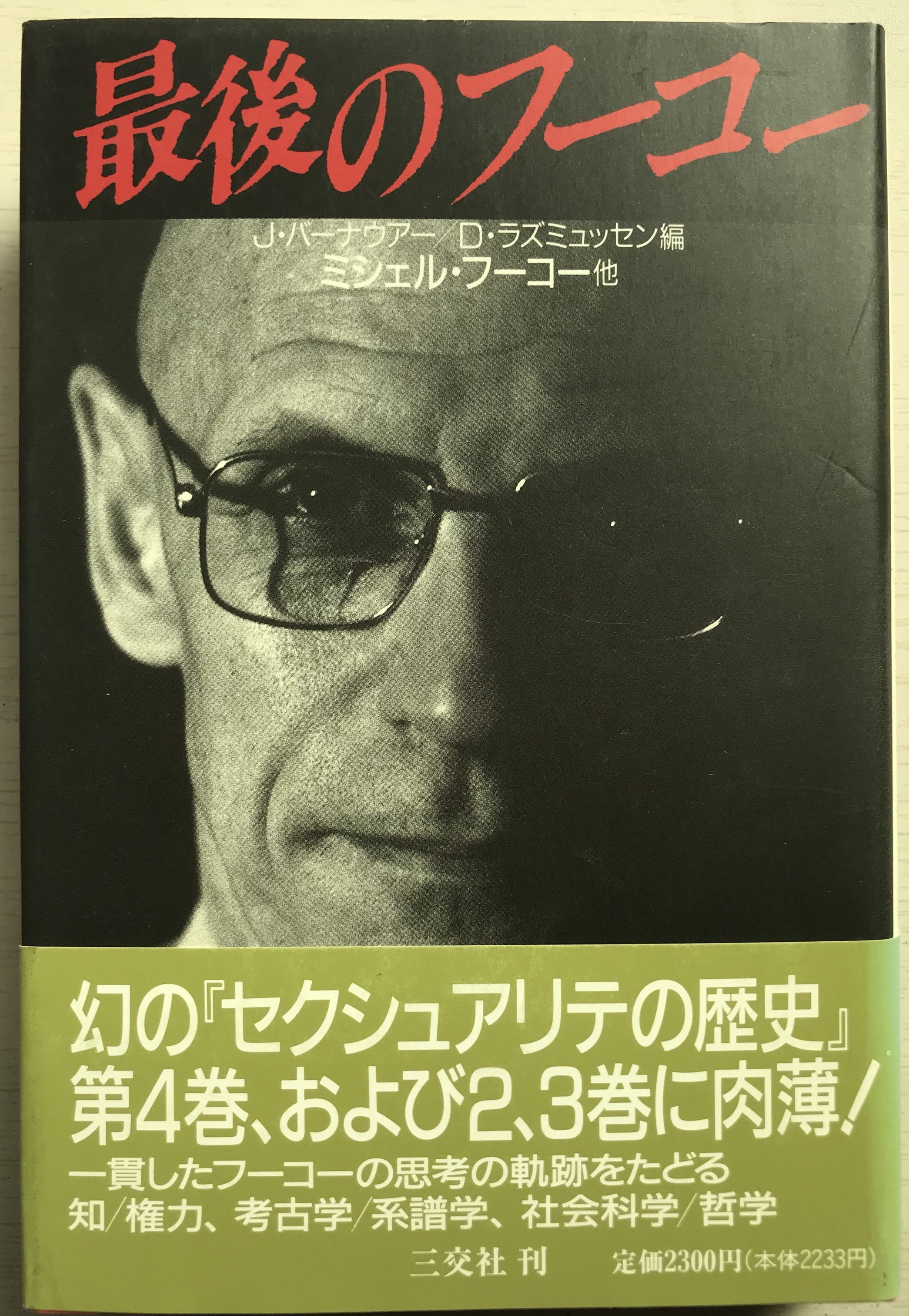 説明:「最後のフーコー」はJ.バーナウアーとD.ラズミュッセン編、ミシェル・フーコー他著による思想書で、山本学ほか訳によって三交社から1990年12月に刊行されている。フーコーの哲学や社会理論を体系的に収録し、現代思想の重要な一端を担っている古典的文献である。