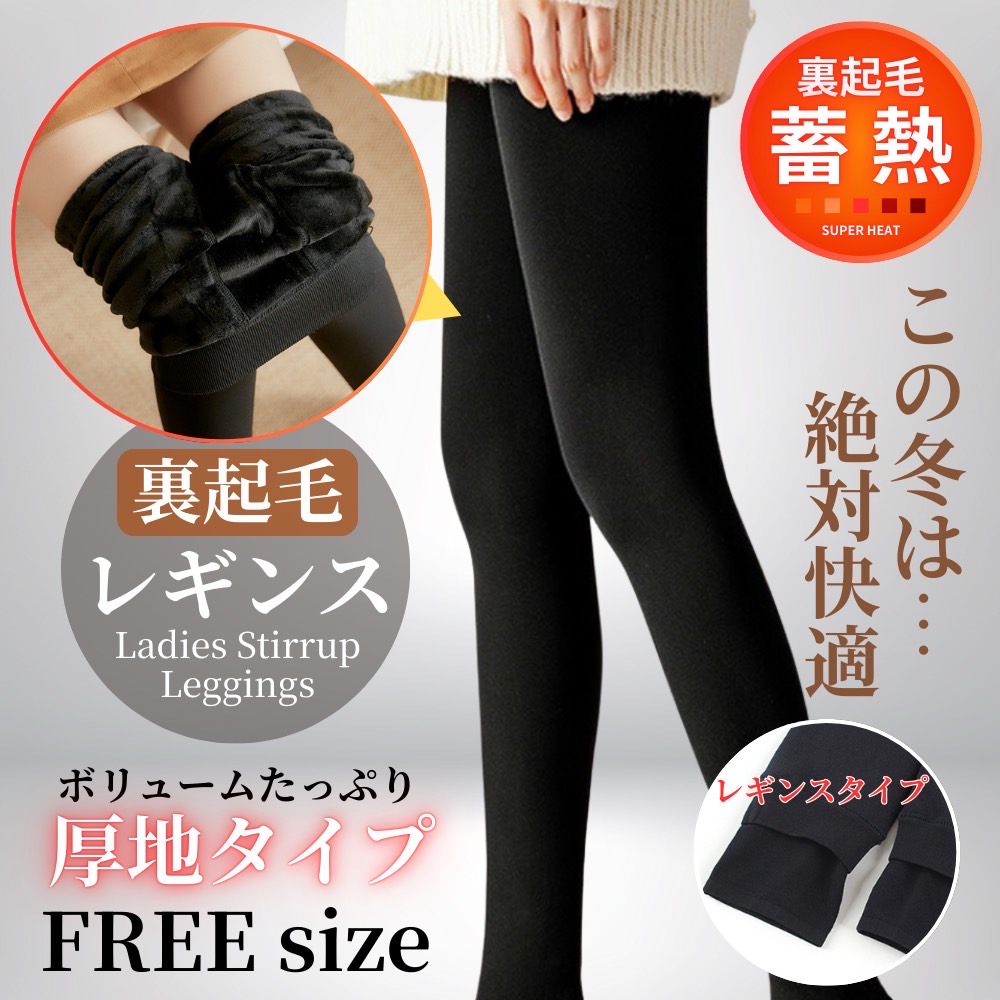 裏起毛レギンス 極暖 極厚 裏起毛 裏ボア ボリュームタイプ 蓄熱 モコモコ 美脚 美ヒップ ブラック フリーサイズ