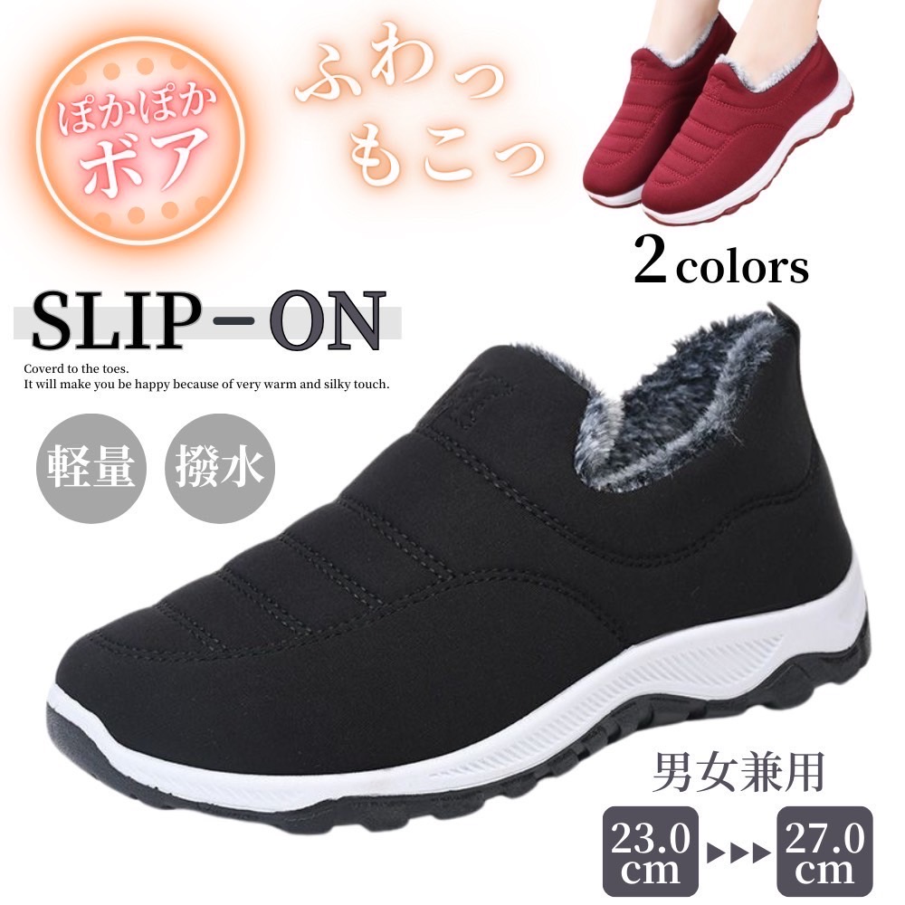 ボアスリッポン レディース メンズ 裏起毛 ボアシューズ スノーシューズ 暖かい 保温 撥水 外履き 室内履き