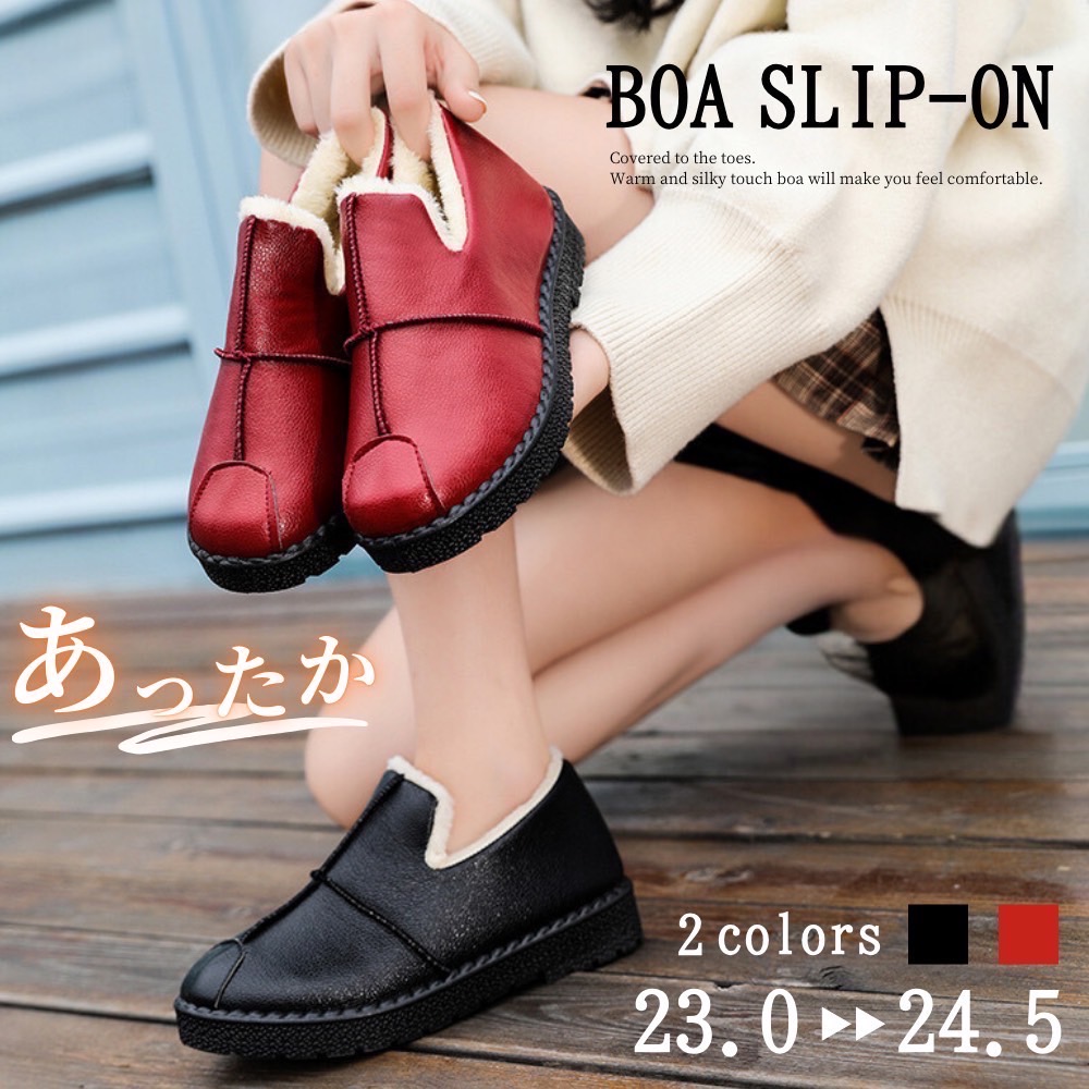 ボアショートブーツ レディース ボアスリッポン 裏ボア ファー ローカット 防水 歩きやすい 滑りにくい