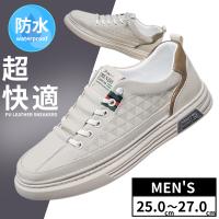 レザースニーカー メンズ フェイクレザー シューズ 紳士靴 PUレザー 防水 カジュアル 通勤 通学 軽量 快適 通気性 ホワイト