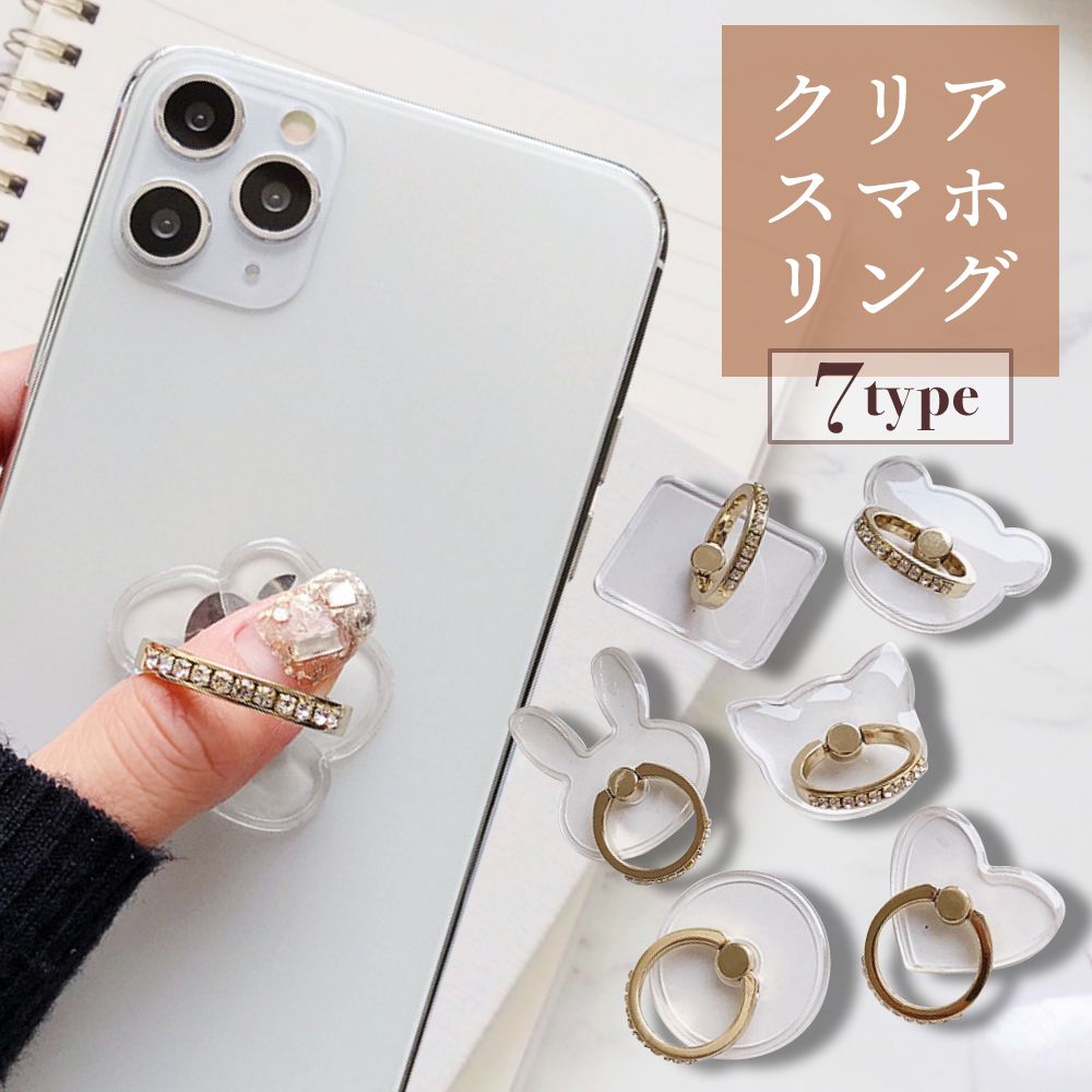 クリア スマホリング 透明 ダイヤモンド 風 宝石 ジュエリー インスタ映え おしゃれ キラキラ かわいい ホールドリング 落下防止 リングホルダー ギフト